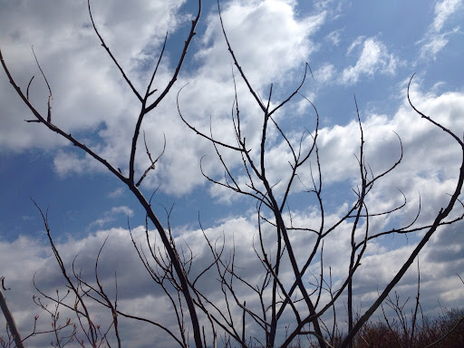 More trees. We saw wild violet, dogs tooth lily, Solomon seal, lots of raspberry canes and beautiful red dogwood.